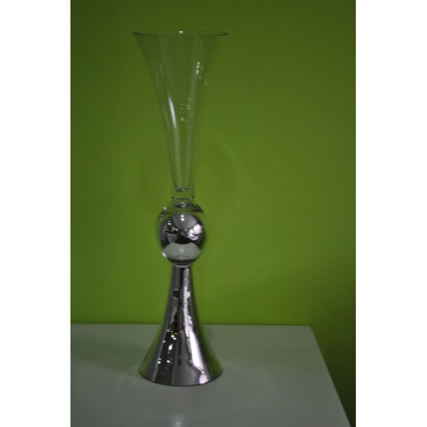 FLORERO BOLA PIE PLATA/VIDRIO 60/15 CM