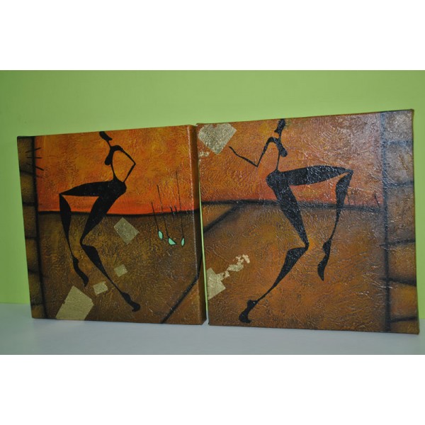 CUADRO AL OLEO ETNICOS 2 UNIDADES 30/30CM